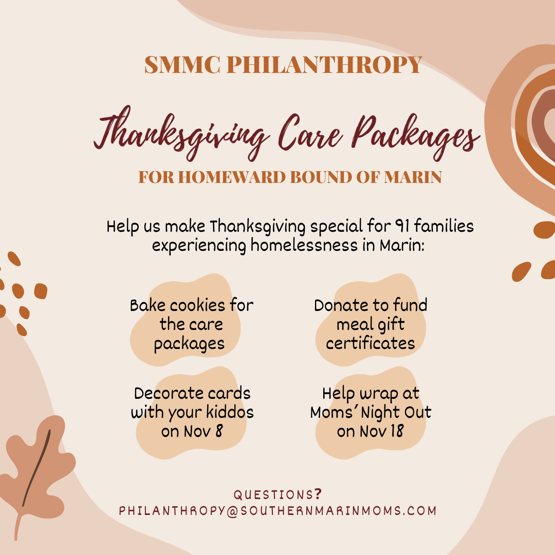SMMC, registered as Southern Marin Mothers’ Organization, is a non-profit, volunteer run club that strives to provide supportive, nurturing community for families to share meaningful experiences, fun, and fellowship that strengthens family bonds. We greatly appreciate any tax deductible donation to our exempt organization (as described in IRC Section 501(c)(3), Tax ID# 68-0427069) Please contact president@southernmarinmoms.com with questions. We thank you for your generosity!